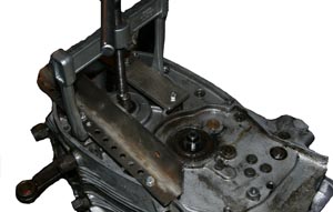 Hier sieht man, wie die Schlammhülsen in der Kurbelwelle ein bzw.